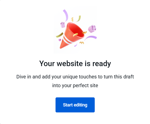 8. Once the website is generated, you will see the Your website is ready pop-up. Click on the Start editing button.