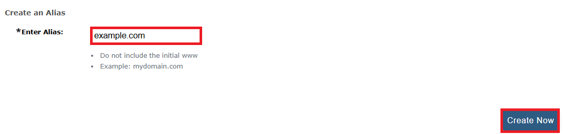 7. Enter the name of the domain you want to use as an alias. Do not include the "www" prefix.