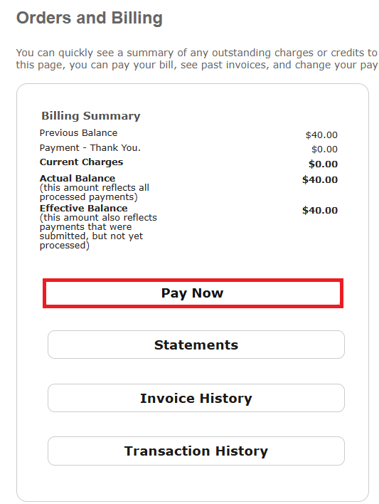 4. Click the Pay Now button located in the Billing Summary section of the page.