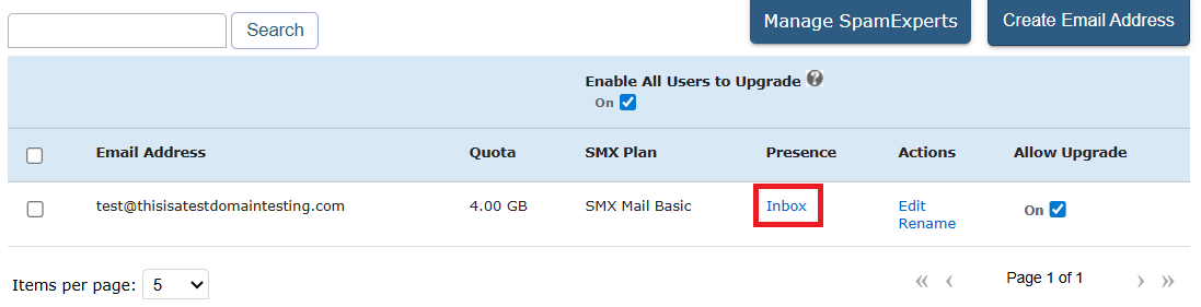 3. Locate the mailbox you wish to access and click on the corresponding Inbox link