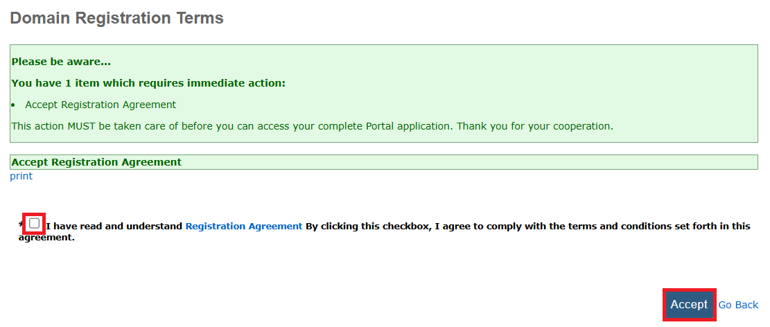 7. Then review and accept the Registration Agreement