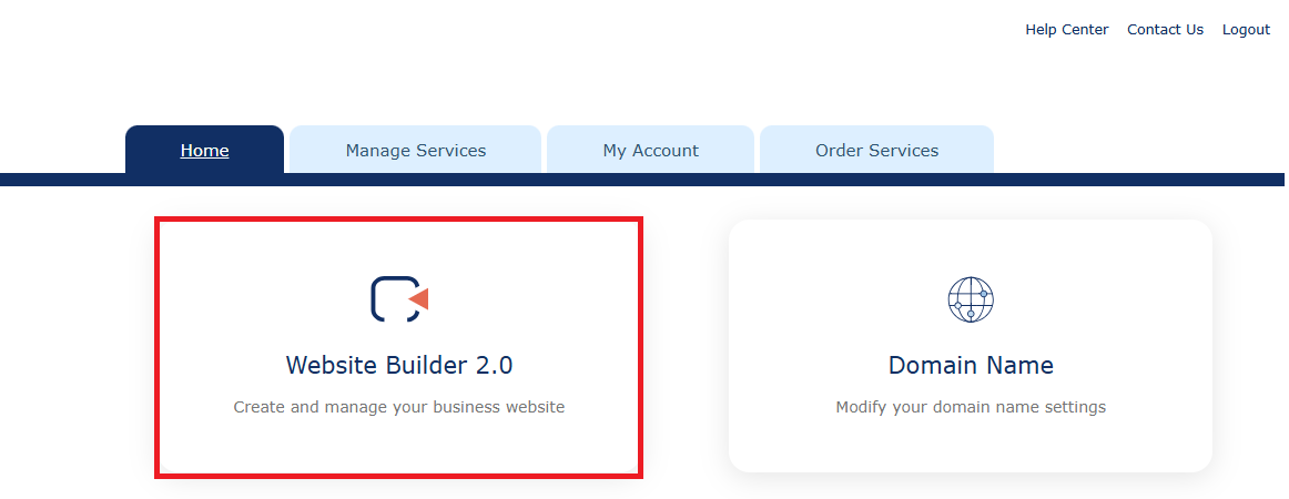 2. Click on the Website Builder 2.0 menu located on the Home Page.